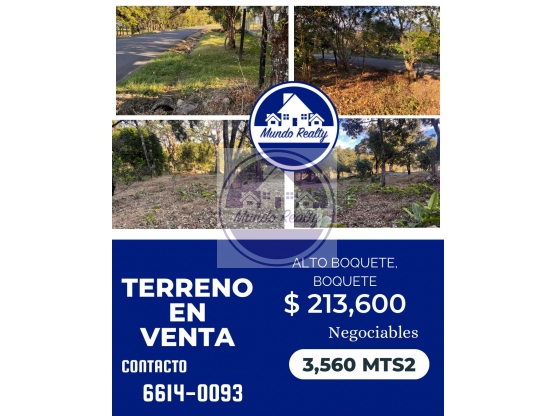 ¡No pierdas la oportunidad de adquirir este increíble terreno en Boquete, uno de los destinos turísticos más populares en Panamá! Ubicado en la hermosa provincia de Chiriquí, este inmueble cuenta con un área de terreno de 3560.0, ideal para construir la propiedad de tus sueños.